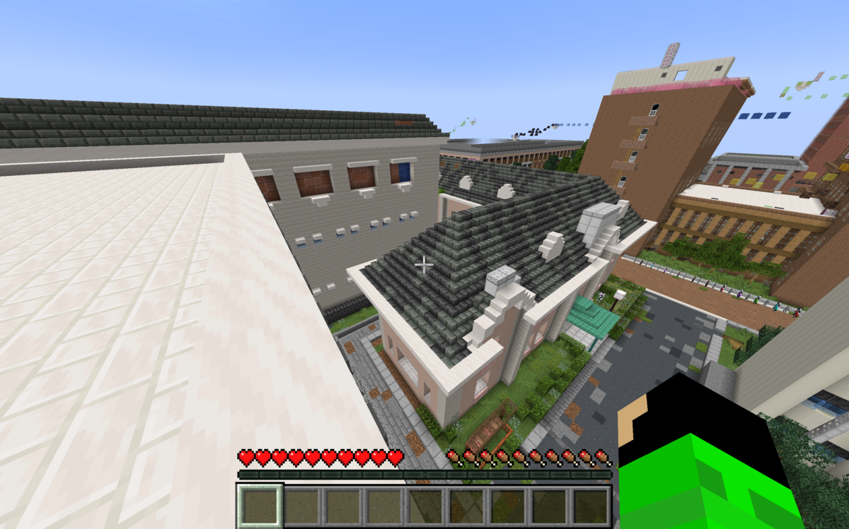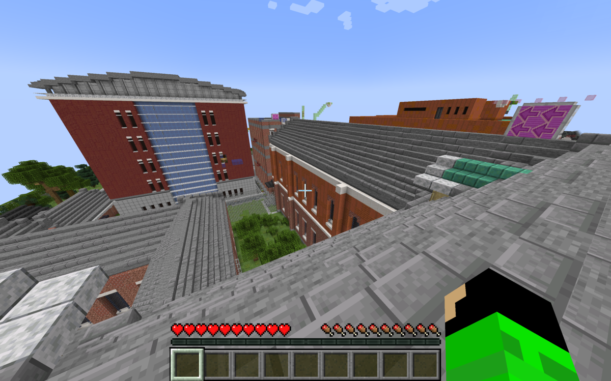 まずは、道なりに沿って学務部棟の屋根の上まで登っていきます。