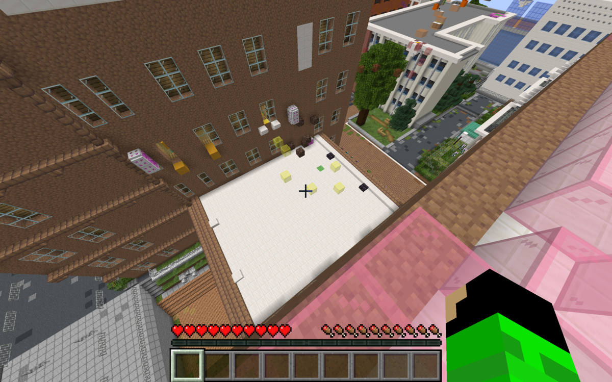 道なりに進むと、下にスライムブロックがあるので、ジャンプして目の前の建物の中に入っていきましょう。